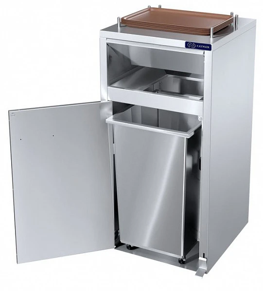 Урна для фудкорта Kayman СО-98-П А предназначена для сбора одноразовой посуды, упаковки от фаст-фуда и прочего мусора, а также для временного хранения использованных подносов в точках общественного питания и ресторанах самообслуживания. Благодаря педальному открытию, руки всегда свободны и не нужно касаться заслонки руками.