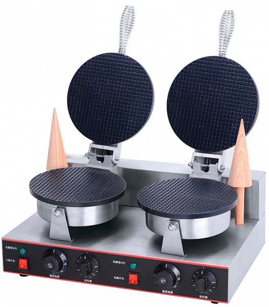 Две круглые рабочие поверхности для изготовления одной круглой тонкой вафли на рожок