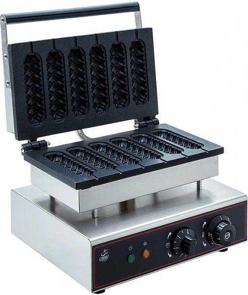 Вафельница корн-дог Crazy Pan CP-CD06 используется на предприятиях общественного питания и торговли для приготовления хрустящих сосисок в тесте.