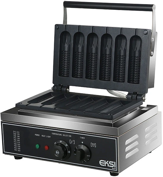 Вафельница корн-дог Eksi ECD-6 используется на предприятиях общественного питания и торговли для приготовления хрустящих сосисок в тесте.