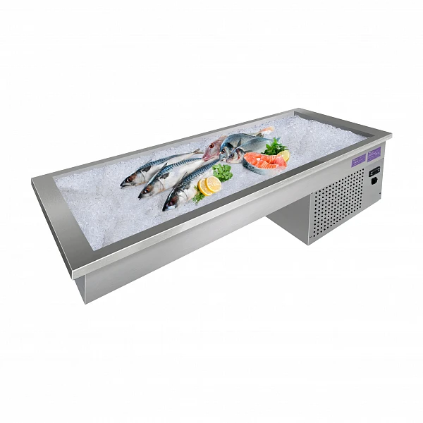 Ванна для льда встраиваемая Finist STATIC ice ВХВл-4 предназначена для демонстрации и кратковременного хранения охлажденных рыбы, фруктов, соков и других продуктов питания, выложенных на колотый лед, на передвижных модулях во время проведения бизнес-ланчей или фуршетных мероприятий либо на линии раздачи готовых блюд или стойках самообслуживания предприятий общественного питания. Модель оснащена самостоятельной холодильной установкой, кабелем питания с евровилкой и кнопочной панелью управления с цифровым дисплеем. Цельнозаливной корпус выполнен из высококачественной нержавеющей стали.