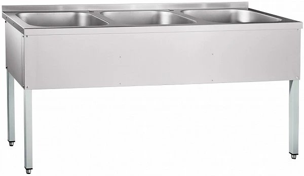 Ванна моечная трехсекционная Abat ВМП-6-3-5РЧ (каркас крашеный) предназначена для мойки посуды на предприятии общественного питания.