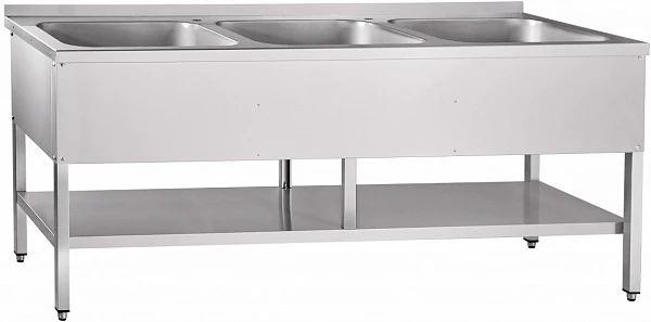 Ванна моечная трехсекционная Abat ВМП-7-3-5РН (с полкой, вся нерж.) предназначена для мойки посуды на предприятии общественного питания.