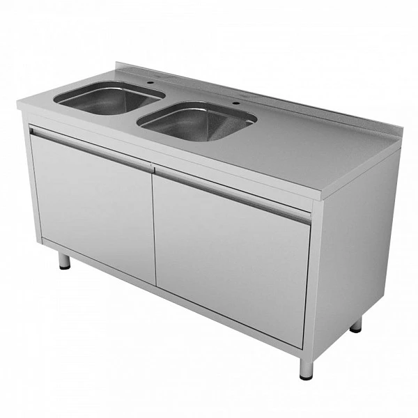 Ванна моечная Gastrolux ВМ2-166/54ЛР/P Premium 2-гнездовая c распашными дверцами (мойка слева) предназначена для мойки посуды на предприятии общественного питания.