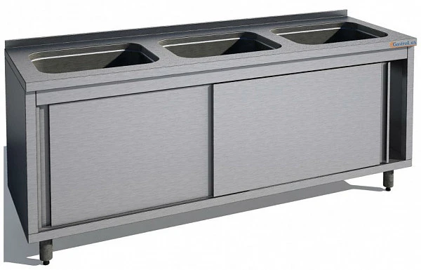 Ванна моечная Gastrolux ВМ3-186/54К/P Premium 3-гнездовая двери-купе предназначена для мойки посуды на предприятии общественного питания.