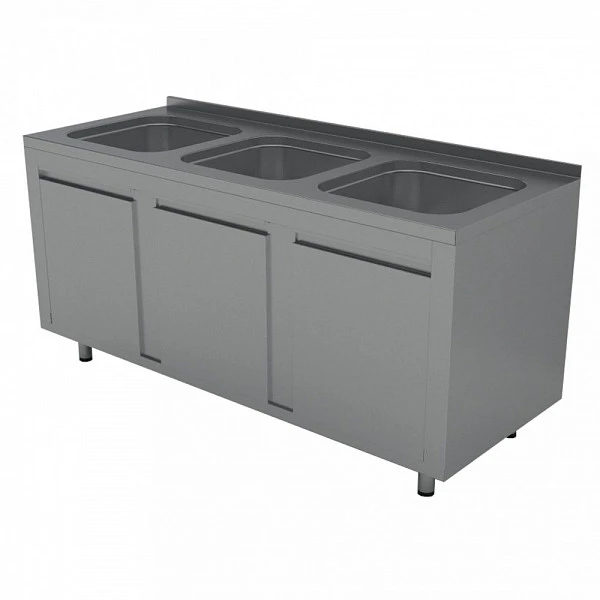 Ванна моечная Gastrolux ВМ3-186/54Р/P Premium 3-гнездовая c распашными дверцами предназначена для мойки посуды на предприятии общественного питания.
