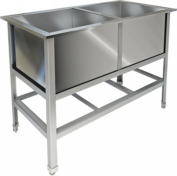 Ванна моечная двухсекционная на оцинкованном каркасе, емкость сварная.
