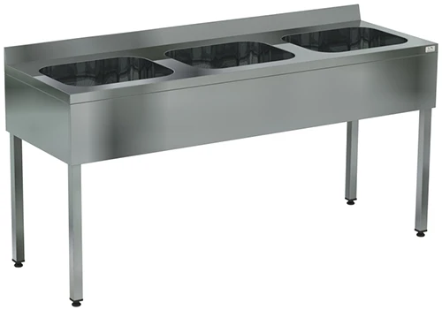 Ванна моечная цельнотянутая трехсекционная c бортом Кобор ВМЦФ/3-180/60 предназначена для использования на предприятиях общественного питания для мытья кухонного инвентаря и оттайки замороженных пищевых продуктов.