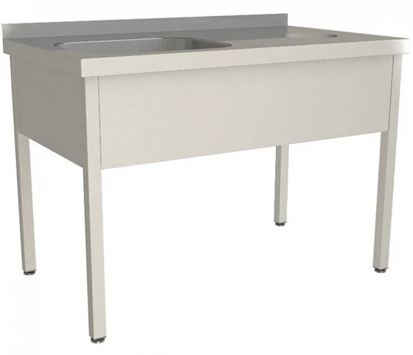 Столешница с бортом 50 мм изготовлена из нержавеющей стали Aisi 430, усилена ЛДСП толщиной 16 мм.