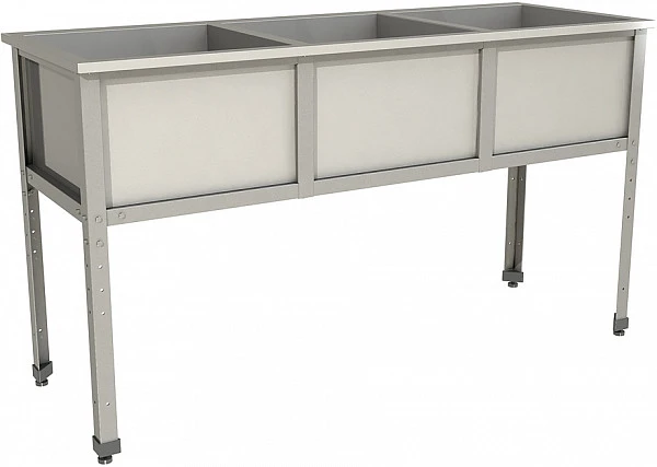 Ванна моечная RESTOINOX ВМС-3/5-ЭН разработана для применения в моечных отделениях предприятий общепита и торговли различного формата, пищевых производств и пищеблоков для мятья посуды, кухонного инвентаря, продуктов питания и рук персонала.