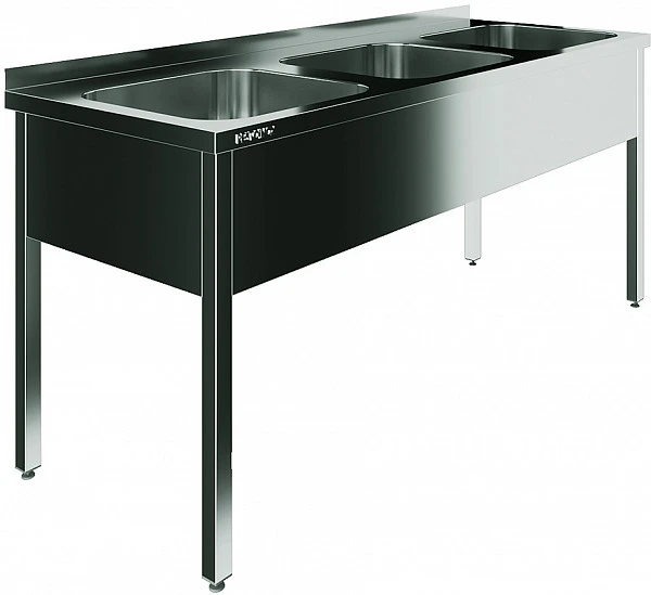 Ванна моечная Restoinox ВМЦ-3/18/6-Б разработана для применения в моечных отделениях предприятий общепита и торговли различного формата, пищевых производств и пищеблоков для мятья посуды, кухонного инвентаря, продуктов питания и рук персонала. Также позволяет временно разместить кухонный инвентарь.