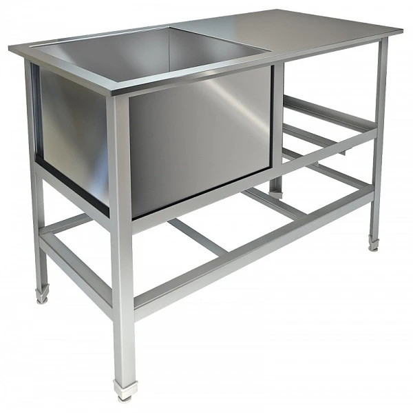 Сварной каркас выполнен из металлического уголка толщиной 2 мм, покрытого порошковой краской, сварная мойка - из нержавеющей стали AISI 304 толщиной 0,8 мм, выпуск - из нержавеющей стали.