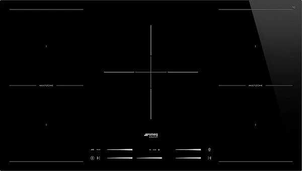Варочная панель Smeg SI2M7953D — роскошная индукционная модель из черной стеклокерамики. Она встраивается вровень со столешницей, благодаря чему отсутствуют видимые стыки и прибор выглядит единым целым с гарнитуром. Это не только смотрится гармонично, но и обеспечивает гигиеничность, поскольку нет мест, в которых могла бы скапливаться грязь. 5 зон нагрева имеют широкий функционал, а часть из них способна объединяться между собой при помощи опции MultiZone. Это позволяет готовить даже в посуде нестандартной формы или размеров. А автоопределение дна оптимизирует воздействие электромагнитного поля в зависимости от габаритов кастрюли.
