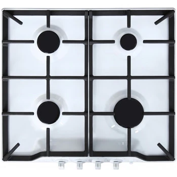 Панель выполнена из эмалированной стали. 4 конфорки располагаются стандартно. Разные мощности позволяют готовить и с различной скоростью, и несколько блюд одновременно. Электроподжиг включается с помощью специальной кнопки, находящейся справа от поворотных механических ручек. Функция фиксированного положения «Малое пламя» дает возможность заниматься готовкой на очень маленьком огне без угрозы потухания.