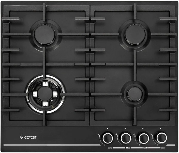 Варочная панель газовая Gefest ПВГ 1214-01 К2 шириной 60 см, поверхность окрашена черной матовой эмалью. Металлическое основание дополняют массивные составные чугунные решетки, им не страшна тяжесть посуды или кастрюли с водой. Надежность и долговечность чувствуется с первого взгляда, управление конфорками - интуитивно, вращением поворотного переключателя регулируется мощность горения, вплоть до фиксированного положения - минимально возможного, без риска погасить конфорку.