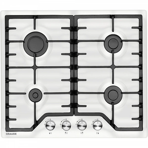 Варочная панель газовая Graude GS 60.1 WM представлена в белом цвете. Такая поверхность проста в уходе, выдерживает высокие температуры и стильно смотрится на кухне.