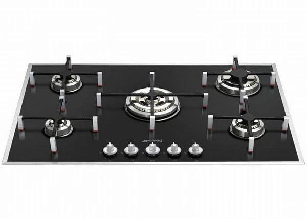 Варочная панель газовая Smeg PVN750 из 5-ти конфорок сделана из долговечных и экологически чистых материалов. Рабочий стол черного цвета из черного стекла обладает устойчивостью к перепадам температуры, различным физическим и химическим воздействиям. За ровной поверхностью очень просто ухаживать, изделие отлично смотрится в любом интерьере кухни. Металлические решетки обеспечивают надежную фиксацию посуды в процессе готовки. Благодаря независимому подключение прибор устанавливается и работает отдельно от духового шкафа, в любом удобном месте столешницы.