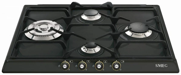 Варочная панель газовая Smeg SR764AO четырехконфорочная варочная панель с эмалированной рабочей поверхностью в цвете антрацит. Высокопрочные чугунные решетки представляют собой надежную опору даже для крупногабаритной посуды, а система защиты от утечек обеспечивает точный контроль за подачей газа Если пламя у работающей конфорки погаснет — специальные датчики сигнализируют для автоматической блокировки подачи газа. Система срабатывает через несколько секунд, обеспечивая защиту от утечки.