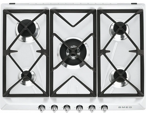 Варочная панель газовая Smeg SR975BGH - наличие пяти разноразмерных конфорок с газ-контролем и автоподжигом позволяет одновременно готовить или подогревать сразу несколько блюд. Модель дополнена прочными чугунными решетками и фурнитурой с эффектом нержавеющей стали.