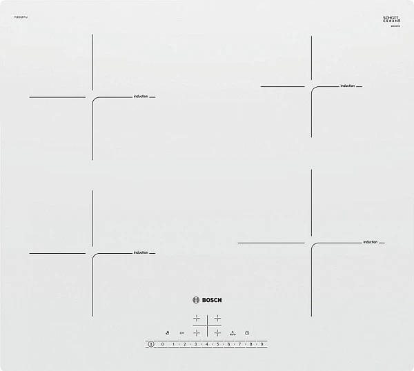 Варочная панель индукционная Bosch PUE612FF1J – оснащение от производителя с мировым именем. Под брендом BOSCH всегда выпускается качественная и надежная техника. Нельзя не отметить минималистический дизайн варочной поверхности. Нет лишних элементов в ее оформлении, она превосходно впишется в интерьер кухни. Установка у варочной поверхности независимая, она имеет собственные средства управления. Клавиши сенсорные, они надежнее механических элементов, удобнее в использовании и четко считывают касания.