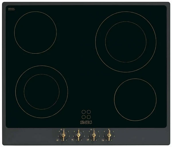 Cтеклокерамическая варочная панель, 60 см, антрацит, фурнитура позолоченная и латунная в комплекте.