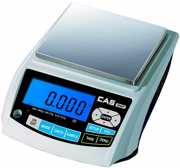 Весы лабораторные Cas MWP-1500 - миниатюрные весы c подсветкой дисплея, счётным режимом и режимом дозирования, а также интерфейсом RS-232C