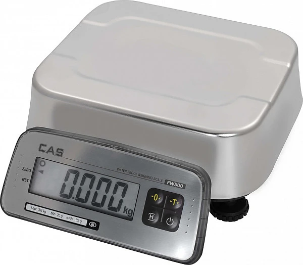 Продуманная и защищенная конструкция весов с закрывающей корпус платформой делает невозможным попадание влаги, воды или пыли внутрь прибора. Очистку от загрязнений можно производить струей воды. Вместе с тем весы серии CAS FW500 обладают широким набором функций, оснащены большим дисплеем, платформой из нерж. стали, а также могут работать в автономном режиме — 100 часов.