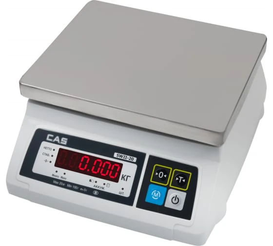 Весы торговые Cas SWII-20W - настольные весы эконом класса с повышенной точностью. CAS SW-II в 2 раза точнее CAS SW-I: у весов SW-I-05 при НПВ=5 кг дискретность (d)=2 грамма, у весов CAS SW-II-0,5 при НПВ=5 кг d=1 грамм.