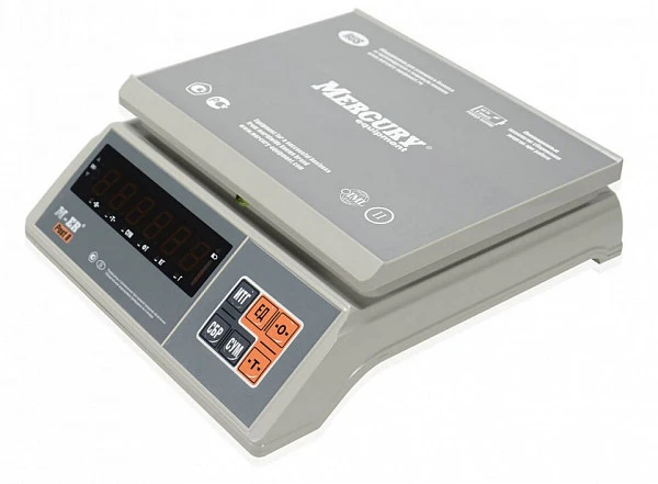 Результаты измерений и подсчетов отображаются на LED-дисплее. На табло содержится 6 разрядов индикации. Для управления весами установлена мембранная клавиатура.