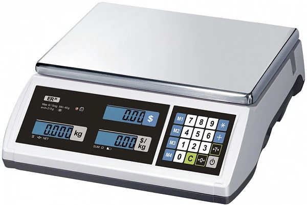 Весы торговые Cas ER JR-6CB со встроенным аккумулятором используются на предприятиях общественного питания и торговли для взвешивания/фасовки и расчета общей стоимости товара по цене за килограмм и измеренной массе.