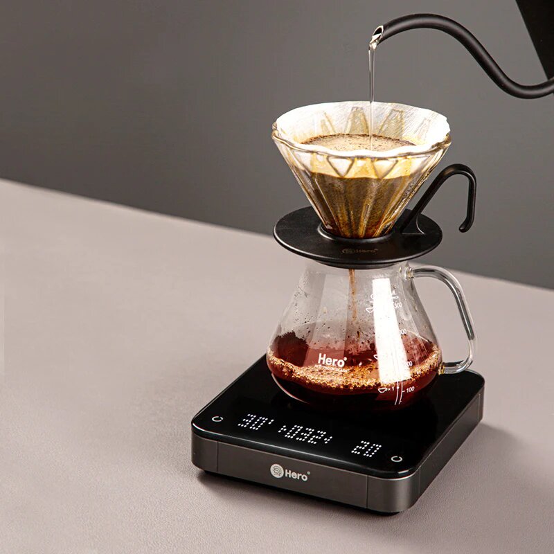 Pour Over Coach Scale - эти весы могут помочь новичкам научиться готовить кофе с наливом. Функция Smart 3-Pour автоматически направляет заваривание, режим Flowrate можно использовать для отработки технологии впрыска воды, тройной дисплей веса + расхода + времени в режиме реального времени. Повышает эффективность ручного капельного приготовления.
