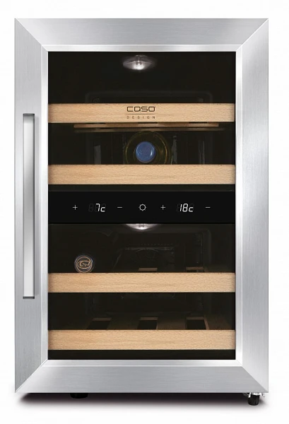 Винный шкаф Caso WineDuett 120 оснащен одной камерой, не шумит в работе, идеально подходит для гостиничных номеров или небольших квартир. Циркуляция воздуха внутри происходит равномерно за счет низкооборотного вентилятора. Верхняя зона с температурным диапазоном от 7 до 18°C рассчитана для белого вина, нижняя зона (от 10 до 18°C) - для красного вина. На стеклянной дверце устройства имеется специальный UV-фильтр, который защищает вино от прямого воздействия солнечных лучей. Стальной корпус стойкий к царапинам. Уход за оборудованием осуществляется с помощью неагрессивных моющих средств.