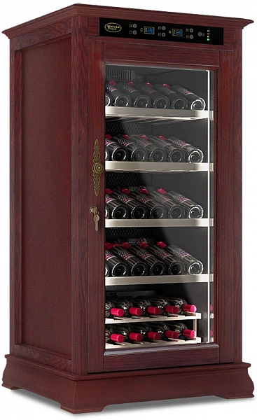 Винный шкаф монотемпературный Cold Vine C66-WM1C является стильным дополнением к вашему дому и прекрасным помощником в вопросе хранения вина. Объем данного шкафа составляет 200 литров, а это означает, что вы с легкостью можете разместить внутри него до 66 бутылок вина типа Бордо объемом по 0, 75 литра. Данная модель является отдельностоящей, а это означает что у вас появится не просто многофункциональный помощник, но также и стильное дополнение к вашему интерьеру. Данный винный шкаф не подразумевает разделения на зоны, соответственно, вы можете разместить в нем вина только одного типа. Температурный режим может быть выставлен любой в диапазоне от +5 до +22 ˚С. Уникальная опция линейки данных шкафов - наличие цифрового контроля влажности. Тип охлаждения - компрессорный. Корпус данного винного шкафа выполнен из натурального дерева цвета махагон (американский дуб). В базовой комплектации имеются деревянные выкатные полки в количестве 5 штук.