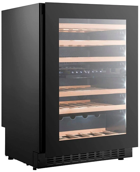 Две температурные зоны (5-12°C, 12-20°C) и вместимостью до 46 бутылок вина.