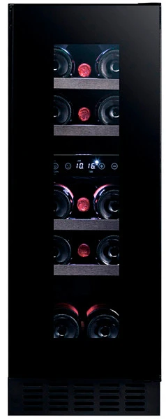 Две температурные зоны (5-12, 12-20°C), вместимость до 17 винных бутылок.