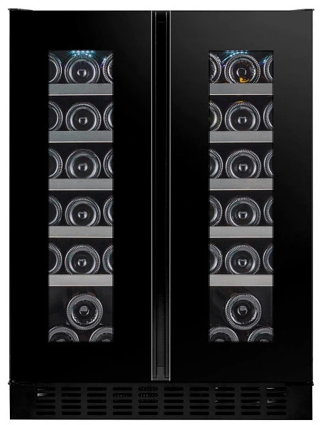 Две температурные зоны (5-20, 5-20°C), вместимость до 38 винных бутылок.