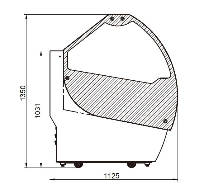 Фронтальное и боковое остекление: стеклопакет, система антизапотевания, внутренняя LED подсветка, раздвижные дверцы со стороны продавца.