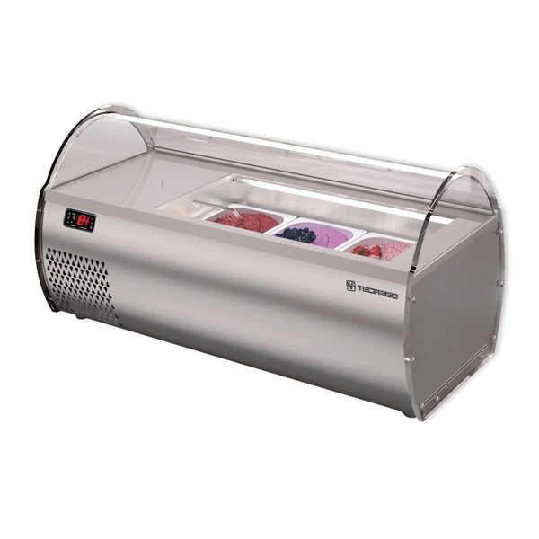 Витрина для мороженого Tecfrigo MICROGEL 2 предназначена для выкладки и демонстрации мороженого в барах, кафе, торгово-развлекательных центрах, кинотеатрах, уличных торговых ларьках и палатках, в заведениях общественного питания.