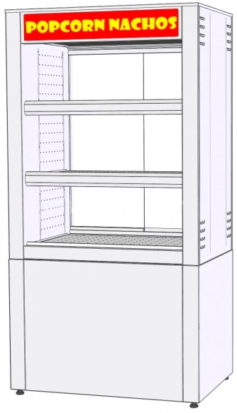Витрина самообслуживания тепловая, с конвекцией RoboLabs VTP-084SN предназначена для демонстрации и хранения попкорна в стаканах на предприятиях общественного питания и торговли.