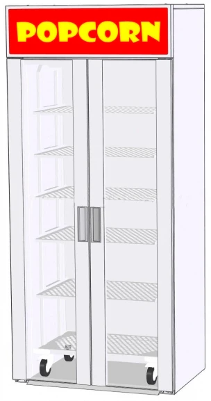 Полки можно устанавливать как горизонтально для попкорна, так и под наклоном для лотков с чипсами начос
