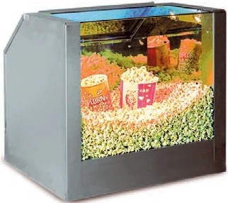 • система кондиционирования внутреннего пространства витрины позволяет поддерживать попкорн в постоянно подогретом состоянии, при этом он не теряет свежести и не слеживается
