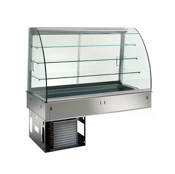 Встраиваемая вентилируемая холодильная витрина Emainox на охлаждаемой поверхности предназначена для демонстрации, кратковременного хранения и охлаждения продуктов, блюд и напитков на предприятиях общественного питания и торговли.