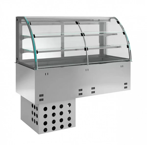 Встраиваемая вентилируемая холодильная витрина Emainox с охлаждаемой поверхностью предназначена для демонстрации, кратковременного хранения и охлаждения продуктов, блюд и напитков на предприятиях общественного питания и торговли. Модель имеет 2 стеклянные полки для выкладки продукции и охлаждаемую поверхность из нержавеющей стали размером 1310х510х30Н мм. Для удобного доступа к содержимому витрины со стороны оператора имеются двери-купе, со стороны клиента откидные дверцы из поликарбоната. Витрина оснащена электронной системой управления, поддерживает оптимальную температуру хранения продуктов в диапазоне от -1 до +5°С, вмещает 4 гастроемкости формата GN 1/1 и имеет мощность 1,1 кВт.