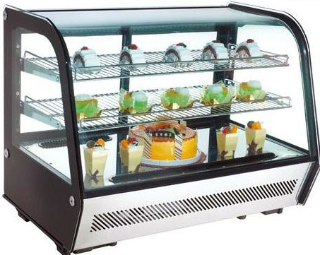 Витрина холодильная настольная вентилируемая с гнутым стеклом Gastrotop RTW-160L предназначена для демонстрации и кратковременного хранения готовых блюд и кондитерских изделий на предприятиях общественного питания и торговли