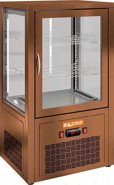 Настольная вертикальная холодильная витрина HICOLD VRC 70 предназначена для демонстрации, охлаждения и кратковременного хранения кондитерских изделий, десертов, сэндвичей и других продуктов и готовых блюд на предприятиях общественного питания и торговли.