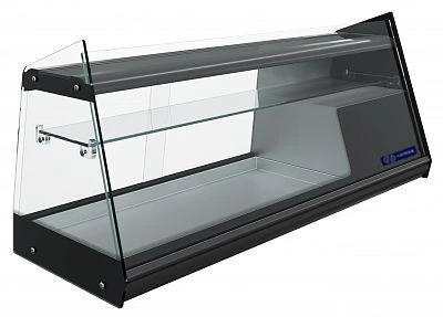 Неохлаждаемая полка внутри объема, корпус из стали, термоизоляция корпуса – пенополиуретан, экспозиционная поверхность из нержавеющей стали. LED подсветка, энергосберегающие шторки, закаленные стекла.