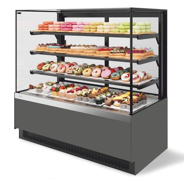 Витрина кондитерская Chilz Vete II kub 130, Серый матовый/Шлифованная нержавейка - обновленная линейка кубических витрин Chilz Vete Kub. Предназначена для демонстрации товаров и обеспечения удобства в магазинах различных форматов. Это идеальное решение для точек общественного питания и магазинов, специализирующихся на продаже кондитерских изделий.