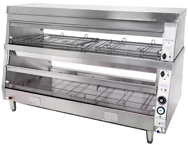 Витрина тепловая передаточная REDGASTRO DBG-1200 служит для демонстрации и сохранения в горячем виде картофеля фри, гамбургеров и других блюд в точках общественного питания и торговли.