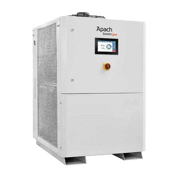 Водоохладитель гарантируют подачу воды при постоянной температуре 2°С в течение необходимого времени на протяжении дня, для каждой партии продукта, даже при высоких температурах окружающей среды (выше 38°С). Для этого наши водоохладители созданы с учетом специфических нужд и производственных условий любого клиента: объем накопителя не всегда является однозначной гарантией высокой мощности водоохладителя, ее гарантирует полезная хладопроизводительность. Все водоохладители Apach Bakery Line оснащены цветным 7-дюймовым дисплеем с интуитивным управлением, который позволяет точно контролировать каждую стадию процесса.