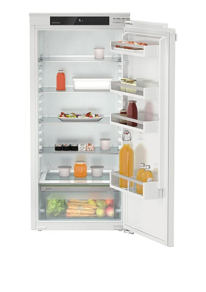 Холодильник Liebherr IRe 4100 встраивается в нишу и имеет перенавешиваемый дверной упор, по умолчанию установленный справа. Вы можете самостоятельно изменить его для создания комфортного рабочего пространства на кухне. Фасады имеют жесткое крепление, вес мебельных панелей должен строго соответствовать требованиям производителя, чтобы не повредить прибор.